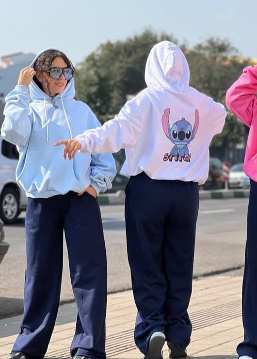 Turn every sidewalk into your runway with this cute and comfy Stitch-inspired set. The oversized hoodie pairs with relaxed navy joggers for an effortless streetwear look that’s perfect for campus, travel, or chilling with friends.